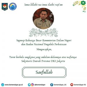Pelitarakyat.co.id – Jakarta, Menteri Dalam Negeri (Mendagri) Muhammad Tito Karnavian mengucapkan duka cita yang mendalam atas wafatnya Sekretaris Daerah DKI Jakarta, Bapak Saefullah. “Kami keluarga besar Kemendagri dan BNPP turut berdukacita atas meninggalnya Bapak Saefullah, Sekda DKI Jakarta, semoga Almarhum ditempatkan di tempat yang terbaik di sisi Allah SWT,” kata Mendagri yang disampaikan Kepala Pusat Penerangan, Kemendagri Benni Irwan dalam keterangan tertulisnya, Rabu (16/9/2020).