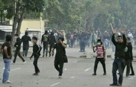 Mahasiswa Hujani Kantor DPRD Kalbar Dengan Batu