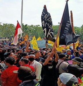 Pontianak,pelitarakyat.co.id, Aksi demo tolak pengesahan Undang – Undang Omnibus Law yang telah ditetapkan DPR, dan aksi demo juga terjadi di Pontianak Kalimantan barag, aksi demo yang digelar oleh ribuan mahasiswa, di Halaman Kantor DPRD Kalimantan Barat berujung ricuh, Kamis (8/10).