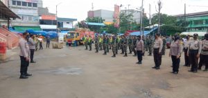 BEKASI – Polrestro Bekasi Kota bersama tiga pilar tingkat Kota Bekasi terapkan 3T dan 3M di Pasar Baru Bekasi, Kota Bekasi, Jawa Barat.