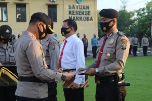 Labuhan Batu, pelitarakyat.co.id, Sebanyak sebelas (11) personil Polres Labuhan Batu terima reward yang diserahkan Kapolres Labuhan Batu AKBP Deni Kurniawan, S.I.K, M.H Selasa, (16/02/21) di Lapangan Apel Mapolres Labuhan Batu.