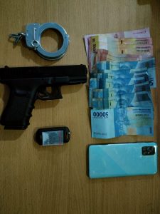 Dijelaskan, dari penangkapan itu petugas Polsek Sunggal juga turut mengamankan barang bukti sepaket sedang yang diduga narkotika jenis sabu, satu unit hp, sepucuk senjata airsoftgun Glock 19, baju kemeja warna hijau bertuliskan QN dan sepeda motor Merk Vario BK 6912 AIF.