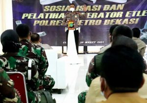Sosialisasi Tilang elektronik atau Electronic Traffic Law Enforcement (E-TLE), ini dilakukan digedung Promoter Polres Metro Bekasi, Selasa Pagi (30/03/2021).