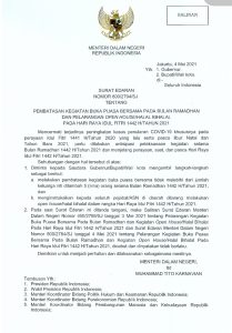 Terbitnya Surat Edaran Nomor 800/2794/SJ ini, juga mempertegas tidak berlakunya Salinan Surat Edaran (SE) Mendagri No.450/2759/SJ Tanggal 03 Mei 2021 Tentang Pelarangan Kegiatan Buka Puasa Bersama Pada Bulan Ramadhan 1442 H/Tahun 2021 Dan Kegiatan Open House/Halal Bihalal Pada Hari Raya Idul Fitri 1442 H/Tahun 2021 dan SE Mendagri No.800/2784/SJ tanggal 04 Mei 2021 Tentang Pelarangan Kegiatan Buka Puasa Bersama Pada Bulan Ramadhan 1442 H/Tahun 2021 Dan Kegiatan Open House/Halal Bihalal Pada Hari Raya Idul Fitri 1442 H/Tahun 2021 dicabut dan tidak berlaku lagi.(/*red-ton)