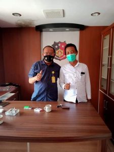Kasat Reskrim Polres Tapanuli Utara AKP Jonser Banjarnahor (kanan) bersama Antoni Pakpahan (kiri) diruang kerja Kasat Reskrim Polres Taput.