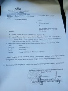 Kasus ini di laporkan Hasan Mina alias Aliong dengan Nomor pengaduan 03/1/2022/Sek Jwi Sltn. Dengan adanya pengaduan tersebut, akhirnya terlapor menghadap unit Reskrim Polsek Jawai Selatan tanggal 19 Januari 2022 lalu untuk Klarifikasi terkait permasalahan hal tersebut.