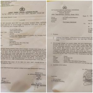 Kasus tindakan pidana ini dilaporkan pemilik sah Liber Simangungsong di Polres Bogor Cibinong Jawa Barat pada tanggal 16 September 2022 lalu, dengan Laporan Polisi Nomor : LP/B/1653/IX/JBR/Res.Bogor.