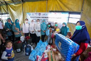 “Kami TP PKK bersama Ibu-Ibu OASE Kabinet Indonesia Maju, Ibu-Ibu Menteri di bawah Ibu Negara, sedikit memberikan bantuan berupa keperluan sehari-hari. Semoga bermanfaat. Kami mendoakan semuanya selalu sehat, terutama anak-anak yang sangat rentan terkena penyakit di kondisi seperti ini,” kata Tri saat menyerahkan bantuan secara simbolis kepada perwakilan warga.