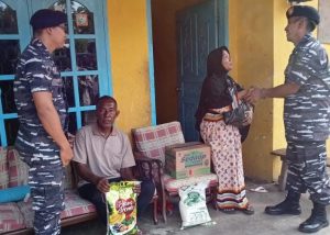 Setibanya di kediaman korban, Babinpotmar Kijang Serka Nav Heru bersama dengan Kadinsos Kabupaten Bintan, Camat Bintan Timur, serta petugas dan perangkat Kelurahan Kijang menyambut kedatangan memberikan santunan dari Pos Binpotmar Kijang kepada korban dan keluarga.