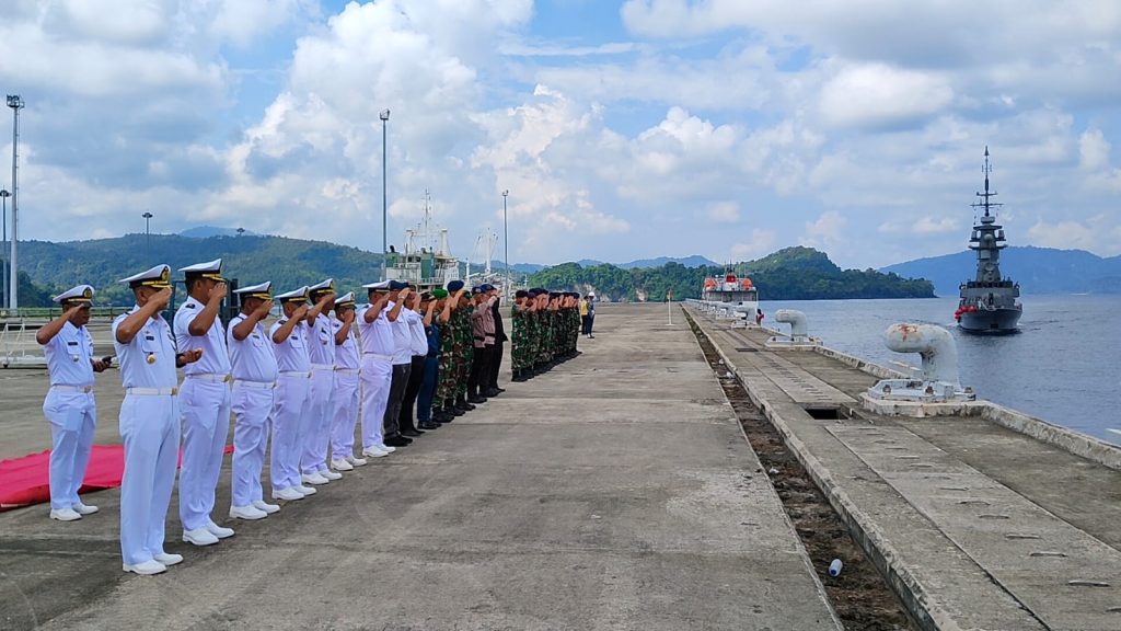 Prajurit Lanal Sabang Sambut Kedatangan Dua Kapal Perang Singapura Ke Kota Sabang