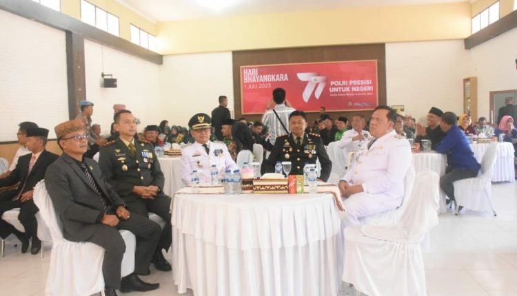 SUKADANA,pelitarakyat.co.id – Bupati Lampung Timur M Dawam Rahardjo pada Sabtu (01/06/2023) dalam acara Syukuran dalam rangka memperingati Hari Bhayangkara Ke-77 Tahun 2023 Polres Lampung Timur yang dilaksanakan di Aula Tribata Tunggal Panaluan Polres Lampung Timur mengatakan,semoga semakin mantap dalam menjalankan tugas pokok dan fungsinya dalam penegakkan hukum serta mengayomi masyarakat.