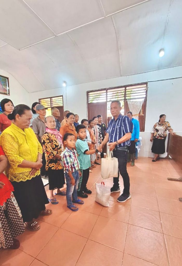Adapun paket sembako tersebut terdiri dari beras, gula, minyak goreng, dan bubuk teh bah butong.