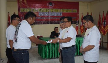 Ketua Panitia Susando Sitohang didampingi Sekretaris Panitia DR Marganda Sitohang dan S.Pakpahan sebagai Bendahara Panitia menyerahkan Laporan Pertangungjawaban Bonataon 2024 kepada Ketua DPW