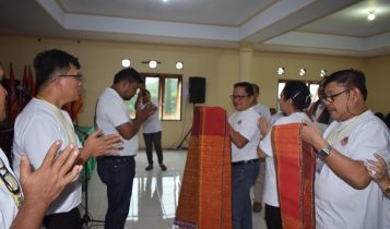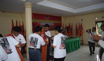 Saat pembubaran panitia bonataon,pengurus DPW PSB Jabodetabek melalui Ketua dan Sekretaris menyematkan ulos kepada panitia sebagai ucapan terimakasih.(yos)