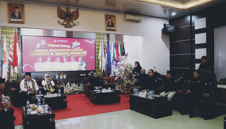 LAMPUNG TIMUR,pelitarakyat.co.id – Dalam rangka Pendaftaran Cabup, Cawabup Lampung Timur Calon Bupati Ella dan Wakil Bupati Azwar tiba di kantor komisi pemilihan umum (KPU) Lampung Timur bersama rombongan pada Rabu (28/08/2024)