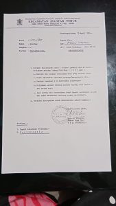 Terbukti, dokumen surat penting lapak terbuka “Pasar Minggon” samping GOR yang telah diserahkan pada Camat Masa Rahmat Zebua, hingga berita ini dimuat belum dipertanggung jawabkan Camat Siantar Timur.
