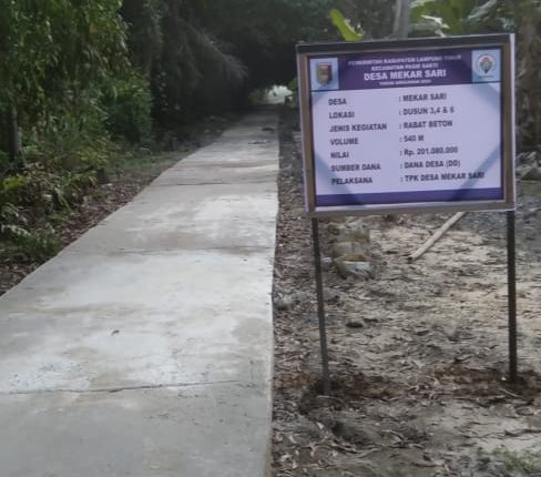 “Pengaspalan lapen dan rabat beton ini juga untuk mendukung program ketahanan pangan. Sebab, jalan ini sering digunakan untuk mengangkut kebutuhan petani hingga mengangkut hasil panen,” ujar Kepala Desa Mekar Sari,Supardi