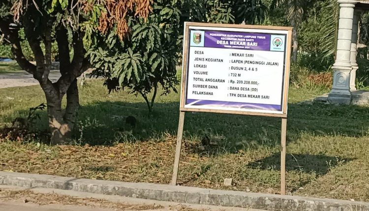 Dimana pembangunan ruas jalan pertanian yang terdapat di dusun 2,4 dan 5 desa Mekar Sari tersebut volume 732 M dengan menelan anggaran sebesar Rp.209.208.000.-