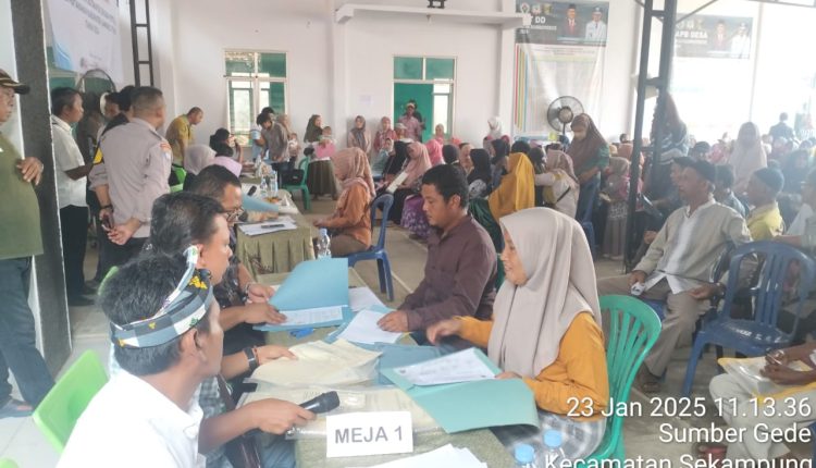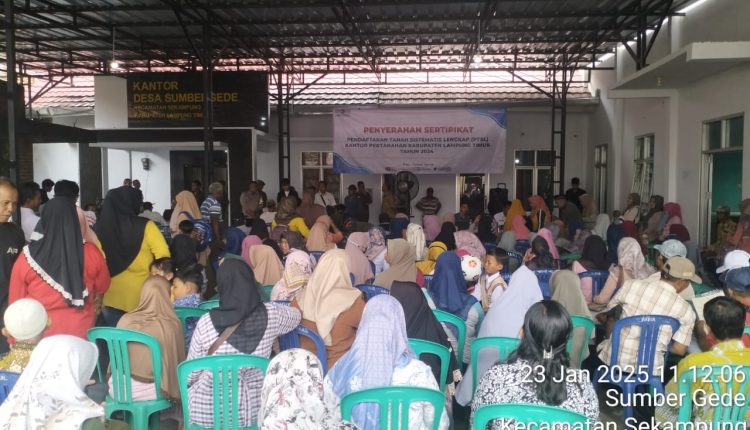 LAMPUNG TIMUR,pelitarakyat.co.id – Badan Pertanahan Nasional (BPN) membagikan 684 sertifikat tanah tahap I melalui program Pendaftaran Tanah Sistematik Lengkap (PTSL) milik warga Desa Sumber Gede Kecamatan Sekampung Kabupaten Lampung Timur Kamis 23 Januari 2025