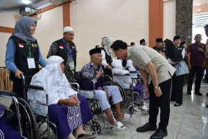 “Jadi Bapak, Ibu jika nanti di sana ada kendala, membutuhkan obat, atau pun makanan-makanan tertentu, mungkin di sini ada pantangan ini, pantangan makan itu, nanti langsung disampaikan ke petugas. Yang jelas, petugas nanti harus siap, sigap, gerak cepat untuk membantu Bapak, Ibu yang sedang beribadah ini,” tegasnya.