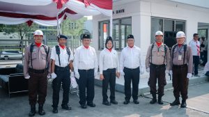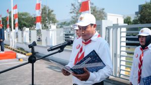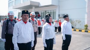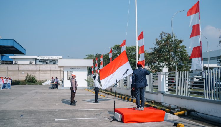 HRD/GA Senior Manager PT.VS Technology Indonesia, Richard Marsahala Sitohang,SH sebagai Pembina Upacara pada HUT ke-80 RI memberikan penghormatan kepada bendera sang merah putih