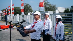 Selanjutnya sambutan Presiden Direktur PT VS Technology Indonesia, Mohamad Yusof usai pengibaran bendera merah putih dalam sambutannya mengajak seluruh staf,managemet dan karyawan untuk tetap bersatu.