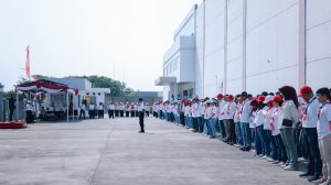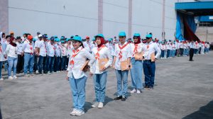 Selesai memberikan sambutan Presiden Direktur PT VS Technology Indonesia, Mohamad Yusof secara simbolis menyerahkan SK pengangkatan menjadi karyawan tetap yang bertepatan pada bulan Agustus sebanyak 117 orang karyawan. (red)
