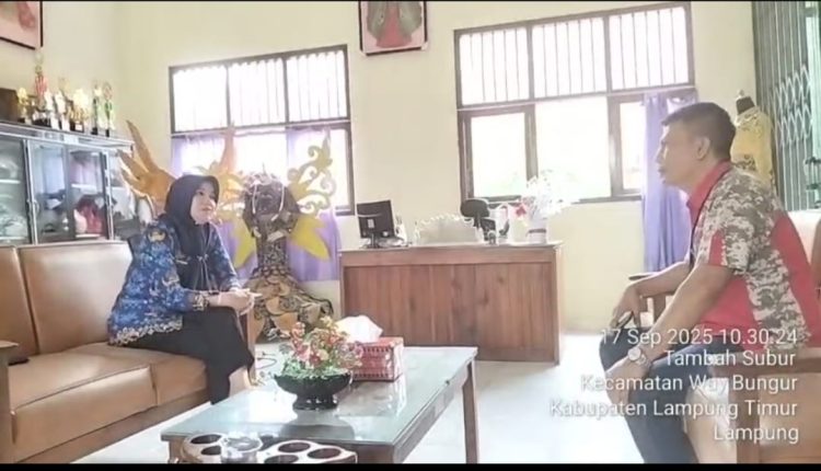 LAMPUNG TIMUR,pelitarakyat.co.id – Oknum Kepala Sekolah (Kepsek) SMKN 1 Way Bungur, YFH, marah yang berujung pengusiran terhadap wartawan ketika dikonfirmasi terkait proyek revitalisasi bantuan pendidikan di sekolah lokasi tersebut. Peristiwa itu terjadi di ruangan Kepala Sekolah SMKN 1 Way Bungur, Kecamatan Way Bungur, Kabupaten Lampung Timur, Rabu, 17 September 2025.