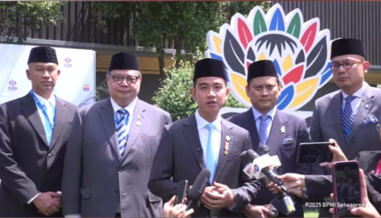 JOHANNESBURG,pelitarakyat.co.id – Wakil Presiden (Wapres) Gibran Rakabuming menegaskan bahwa kehadirannya pada KTT G20 Afrika Selatan merupakan penugasan langsung dari Presiden Prabowo Subianto. Sesuai arahan Kepala Negara, Wapres menyampaikan berbagai pesan strategis Indonesia kepada komunitas global melalui berbagai forum.